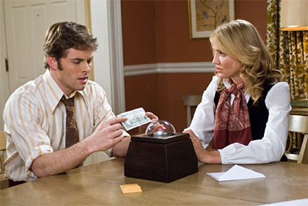 The Box begins as a morality play, becomes a science-fiction thriller, and ends in a muddle of otherworldly trickery that seems to hint at the end – albeit a very slow one – of all humanity. James Marsden and Cameron Diaz play a 1970s-era couple who are approached by silky, menacing Frank Langella, who offers them a chance to earn a million dollars by merely pushing a button on a mysterious box. The trick? Somewhere, someone in the world will die. Beyond this offer is a grand and potentially damning scheme that poses the question: what if the powers that be don’t play fair?