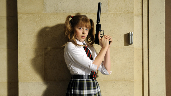 Months later, all the nerve damage and numerous metal pins in his body make Dave impervious to pain, allowing him to take another shot at being a masked avenger. Soon after some fortuitous YouTube footage propels him into the public eye, he comes into contact with Big Daddy and his daughter, Hit Girl (Chloe Moretz), as well as Chris D’Amico (Christopher Mintz-Plasse), who goes by the name Red Mist. Problem is, D’Amico’s father Frank (Mark Strong) is the boss of all crime bosses in town, and Big Daddy’s number one target.