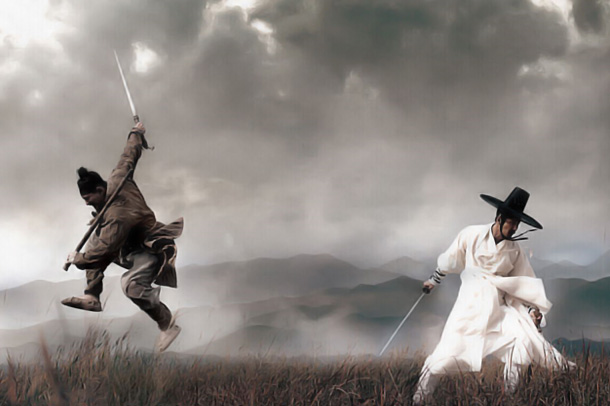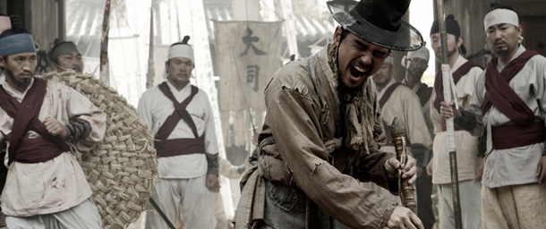 The film is ostensibly about the invasion of 16th century Korea by the Japanese, and the re-aligning of the internal government into a “grand alliance” created by blind acupuncturist Hwang and steely warrior Lee. The East and West cabinets can barely meet, let alone agree on the slightest of issues, and when Lee announces solemnly that he is “neither East nor West”, someone should have noticed he was taking down everyone’s addresses, because the next time they see Lee, it doesn’t go so well.