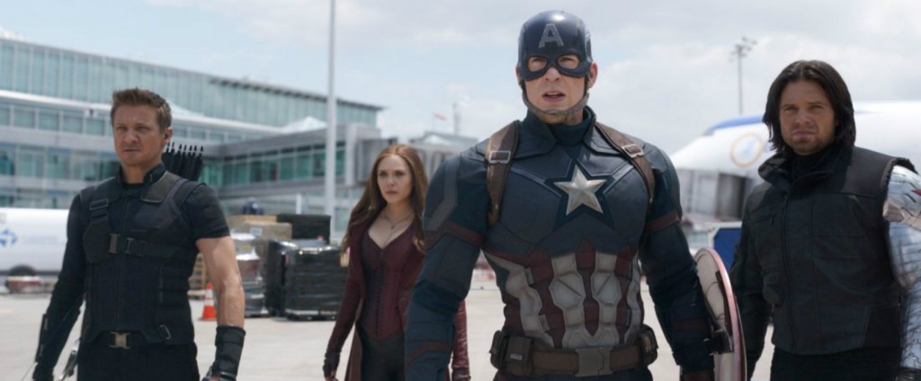 The movie allows Iron Man (Robert Downey Jr.), Captain America (Chris Evans), Black Widow (Scarlett Johansson), Falcon (Anthony Mackie), War Machine (Don Cheadle), Hawkeye (Jeremy Renner), Vision (Paul Bettany), Scarlet Witch (Elizabeth Olsen), and newly-introduced Black Panther (Chadwick Boseman) to pout and glower and scowl, in and out of their skin-tight costumes. Help yourself.