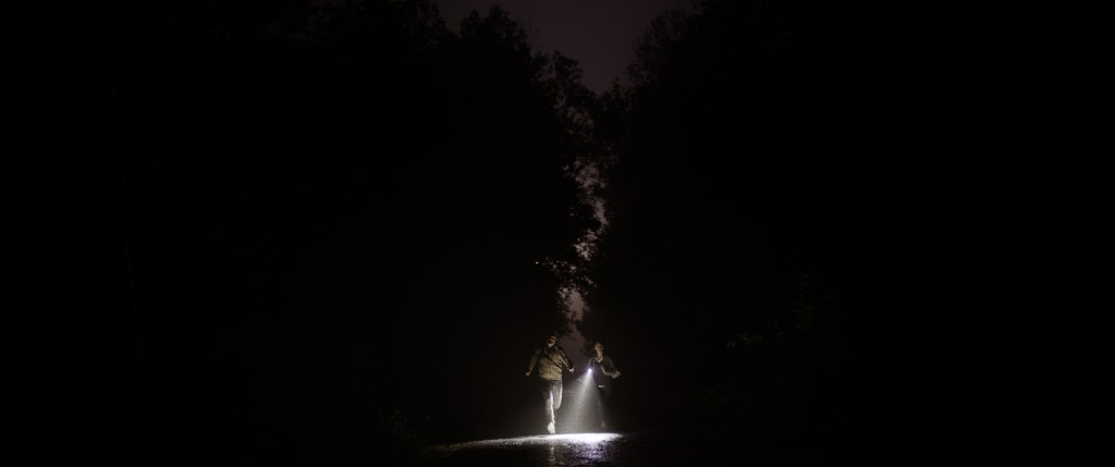 The car stops working. Screaming matches ensue and each person’s motivations are questioned. Attempts at finding help along the wooded road leads them back to the same spot because, of course, all horror films exist in a sinister time loop. Then something begins teasing them, and ensuing quick cuts to half visible faces or dark shadows behind them begin to take over. Added to the tension are some serious secrets in both the closets of Cami and Spencer, which seems to be the primary motive of the force they come to know as The Toll Man.